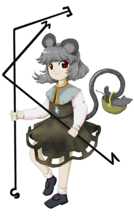 Nazrin is a skilled dowser and the leader of a great number of mice. She was asked by Shou to look after the flying treasures. Getting a treasure reading, she descends from the flying ship, encounters the heroine, and is either provoked or forced to fight her. Later on, she encounters the heroine again in order to get the treasure. In fact, she is Shou's underling in trying to revive Byakuren. Although she fails in defeating the heroine, she is actually testing the pagoda before giving it to her master.